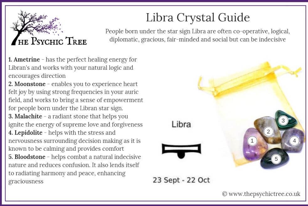 People born under the star sign Libra are often co-operative, logical, diplomatic, gracious, fair-minded and social but can be indecisive. With that in mind this crystal pack has been designed around your birthstones.