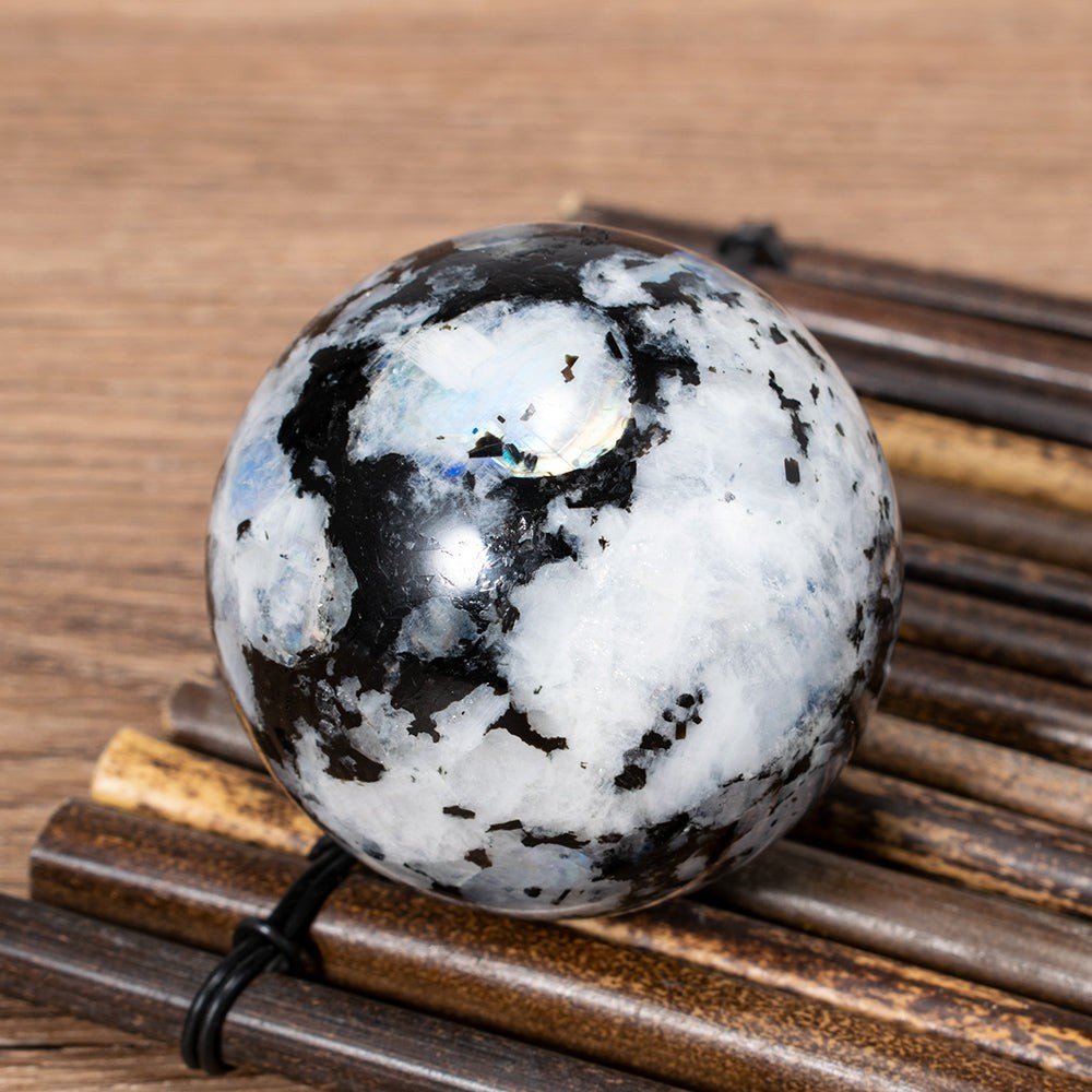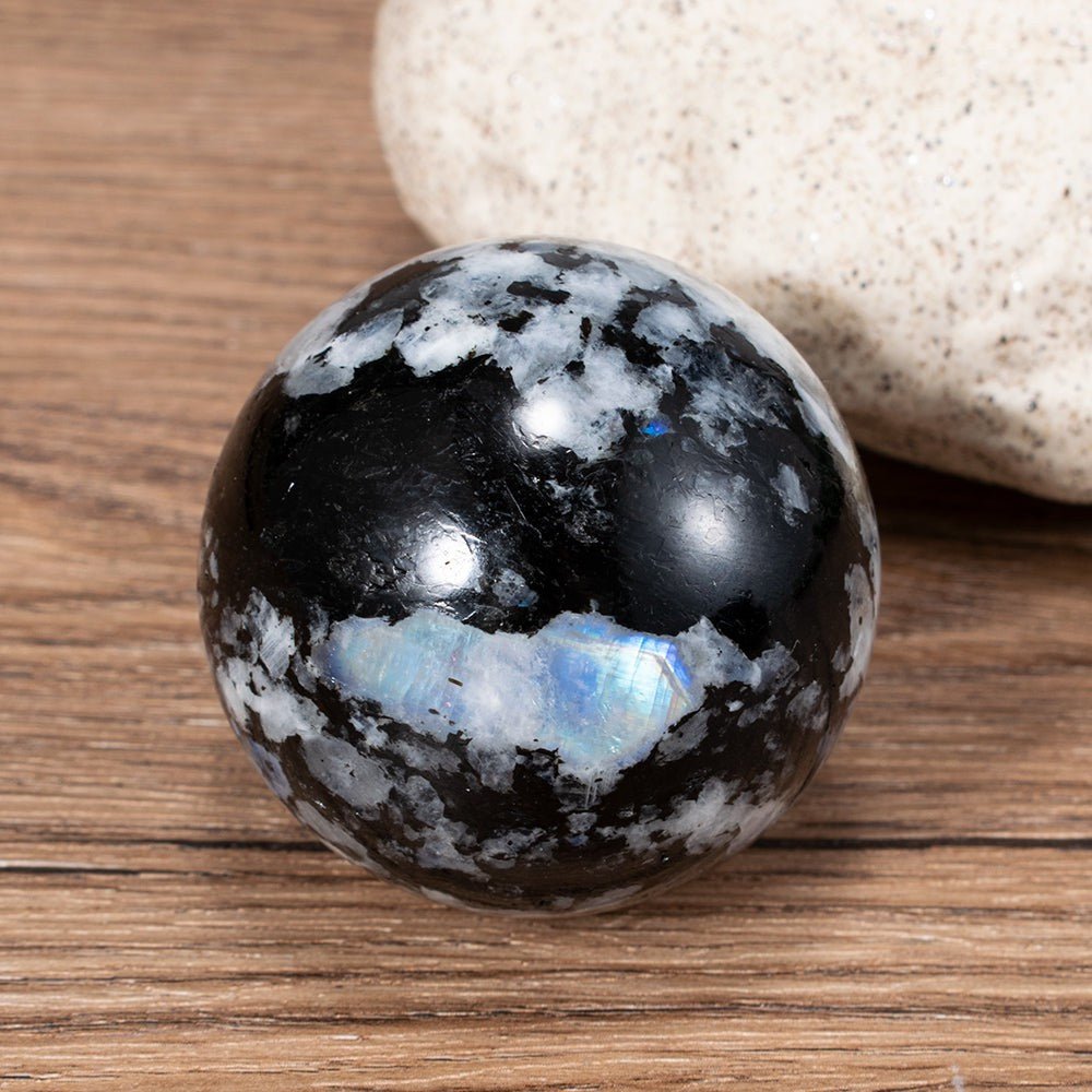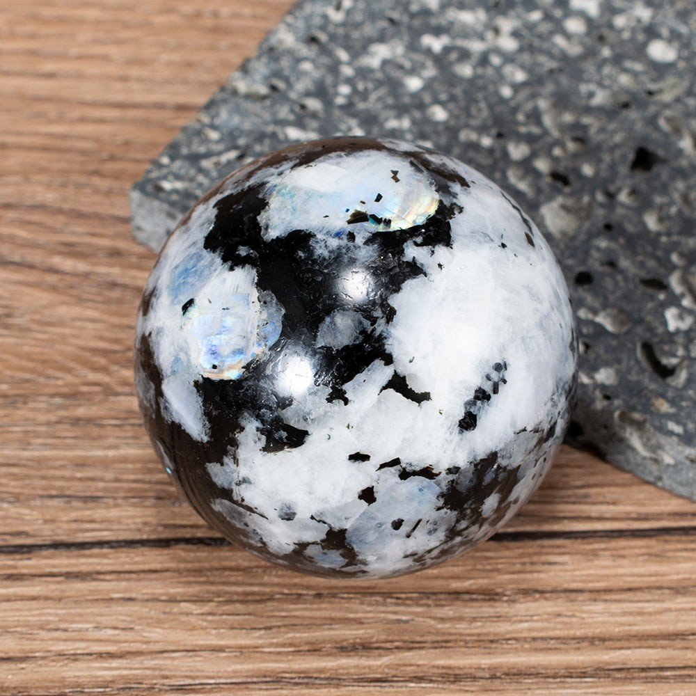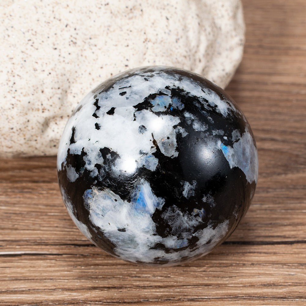 Immerse yourself in the ethereal dance of iridescent hues as the Moonstone Sphere reflects the gentle glow of ambient light. Each sphere is meticulously carved from genuine moonstone, a gemstone revered for its connection to the lunar energies and spiritual enlightenment.